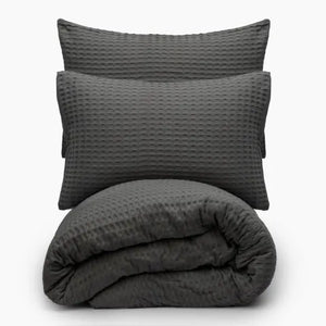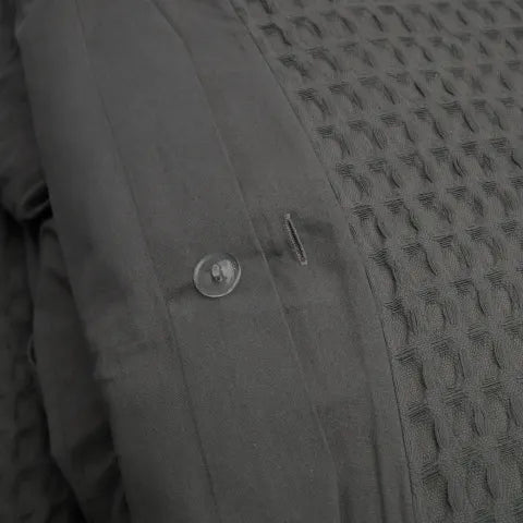Texture makes all the difference — and this Grey Chunky Waffle Duvet Cover Set brings it in the cosiest way. Made from soft, breathable cotton, it layers your bed with just the right mix of comfort and calm. Comes with two matching pillowcases to pull the whole look together.